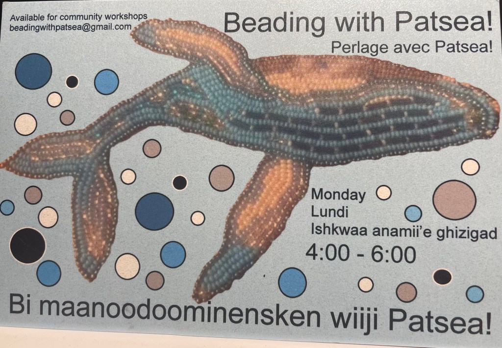 Join us every Monday from 4:00 – 6:00 pm in the beading circle in person and on Zoom.
